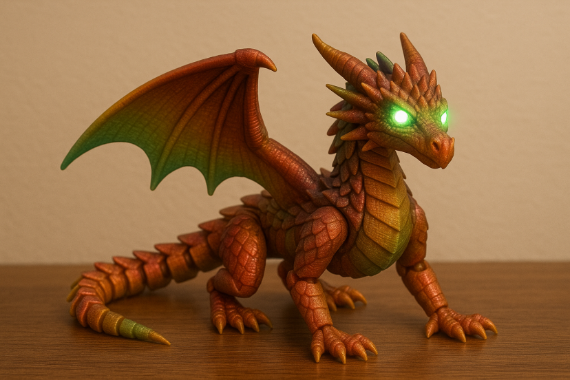 Glowing dragons turn heads—literally. LEDs are surprisingly easy to integrate even into moderate-sized prints.